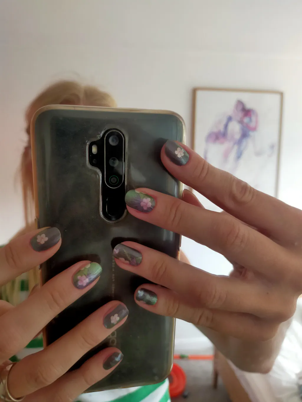 When your dedication to the nail wrap game gets you using all "leftovers" and you mix jet black set with Hummingbird set 💚🖤