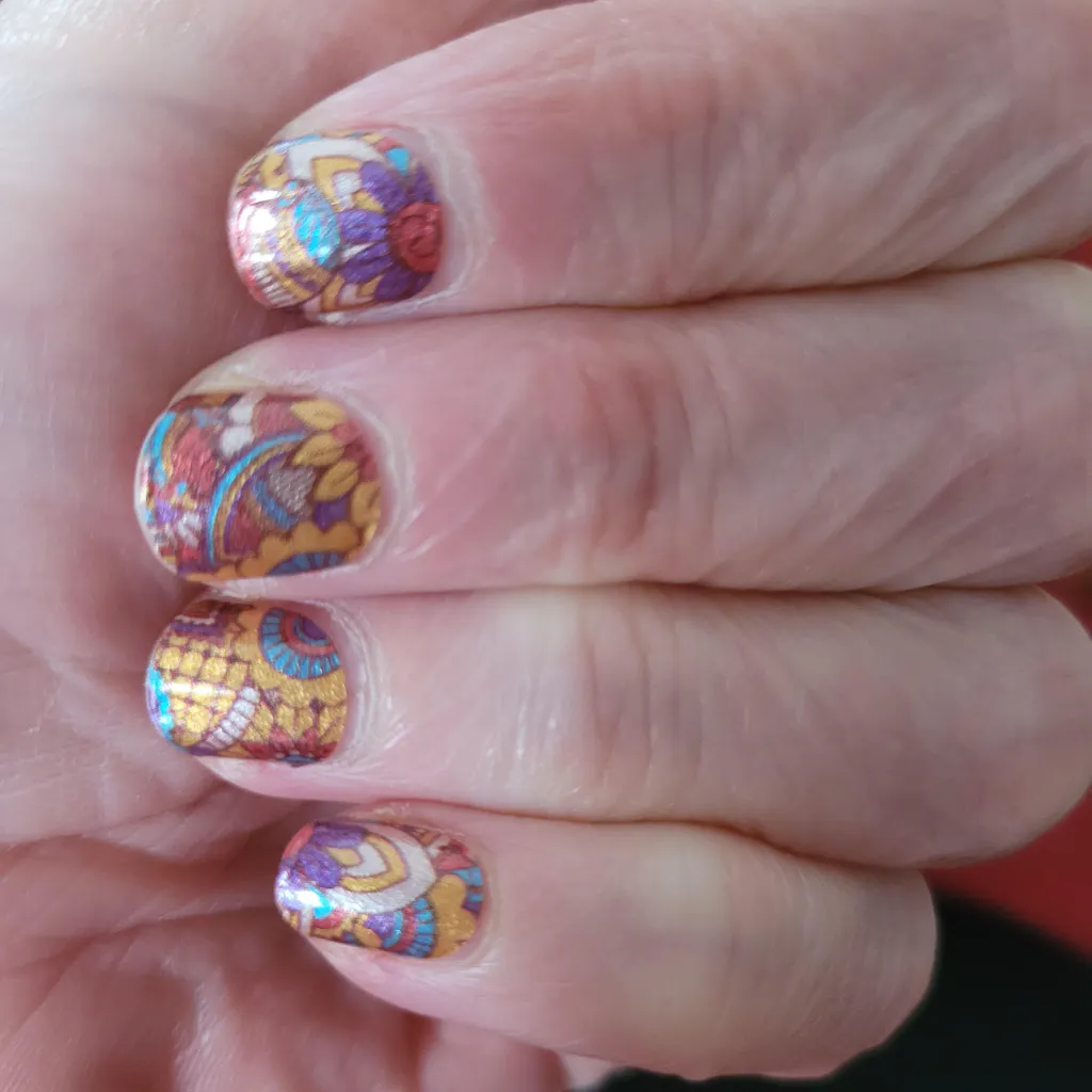 It feels like the decision to make patterns for wider nails was a bitter struggle where the conclusion was, "fine, we'll give them *one* slightly wider strip, but that's only to mostly do the thumb, for the rest we'll leave a load of pointless little narrow strips because we *really* only want people with small and pretty hands wearing our stuff".