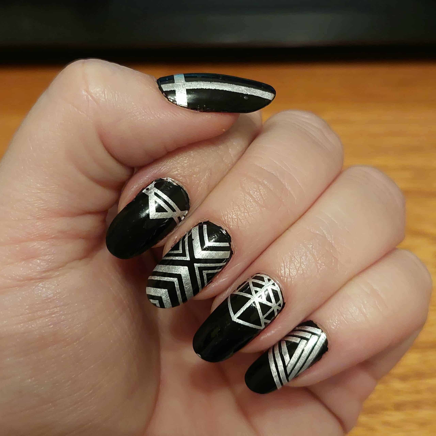 Love love love. The lines are more silver than holographic, but they stand out well enough on a bold colour